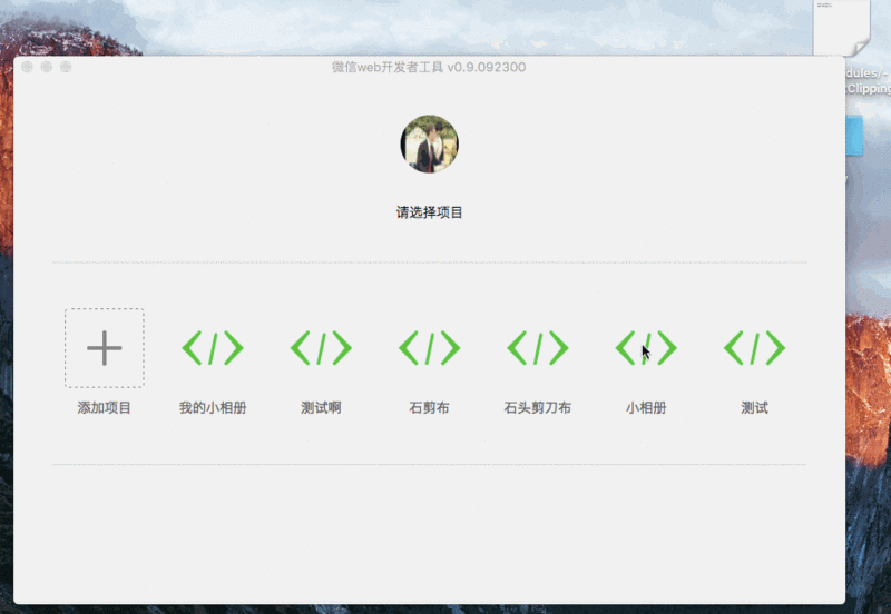 安装好之后打开运行,会要求微信扫码登陆。之后,就可以看到创建项目的页面了。
