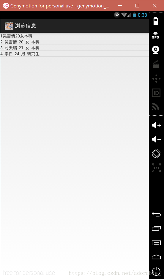 要求:使用SQLite实现个人信息管理系统,个人信息包括姓名,年龄,性别以及学历