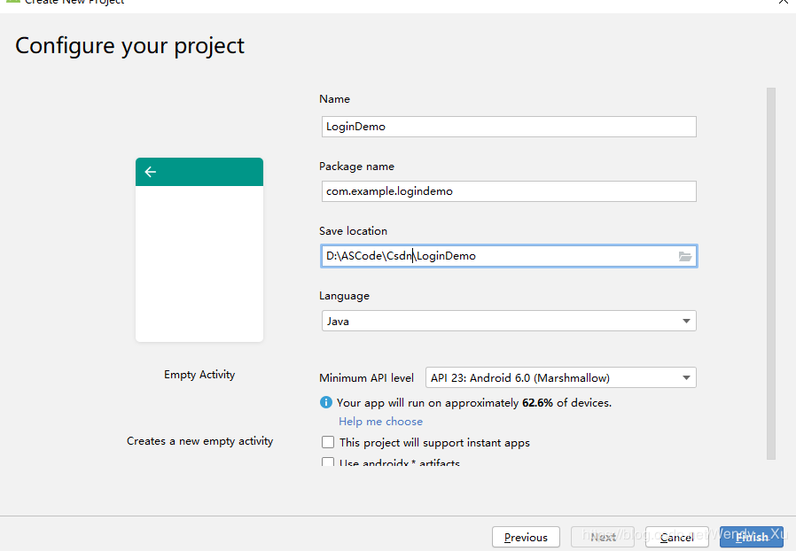注:所建工程均为Android 6.0 所以只要是Android 6.0(包括6.0)以上的真机,模拟机都可以使用