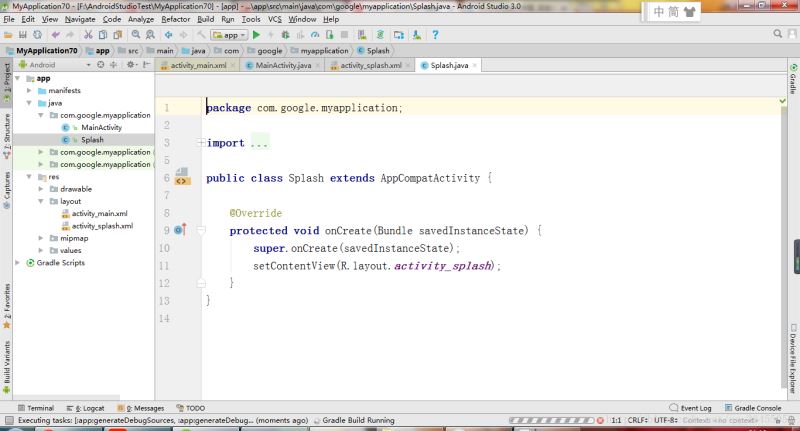 第四步:修改SplashActivity中的代码如下