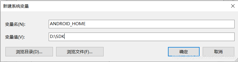 2、新增变量ANDROID_SDK_HOME,变量值为avd路径