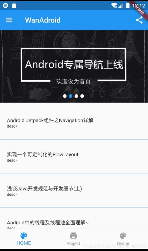 闲来无事,写个玩安卓的首页,实现多布局、banner的效果。其中涉及知识点侧滑,pageview 切换页面,页面跳转传值及回调数据(在侧滑里)。这些都是基于自己学习做的demo。