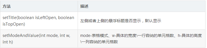 这个setTitle(boolean isLeftOpen, boolean isTopOpen)有什么作用呢?为了确保表格的每一个单元格的长度和宽度都一样(子视图可以在横纵方向上占有多个单元格),宽和高都使用两种方式: