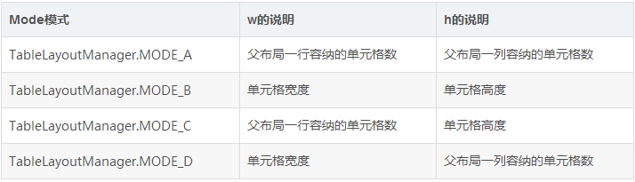 // if use butterknife // or use findViewById @BindView(R.id.tb) TableView mTable; // 默认为 TableLayoutManager.MODE_A, 4, 8 mTable.setModeAndValue(TableLayoutManager.MODE_A, 6, 8);