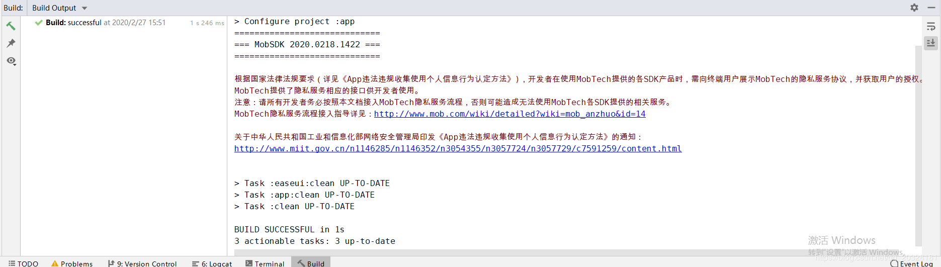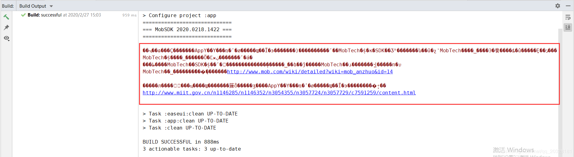 好的一点,我们的AndroidStudio迎难而上,最近发布了3.6最新版本,不得不说最新版本还是更新了很多地方,但也有出现了一些问题,比如我最近就碰到了这么一个问题,在我升级到了Android Studio3.6以后发现,编译的时候在底部出现的Build窗口中文出现了乱码的问题,代码中没有出现乱码情况,如下图: