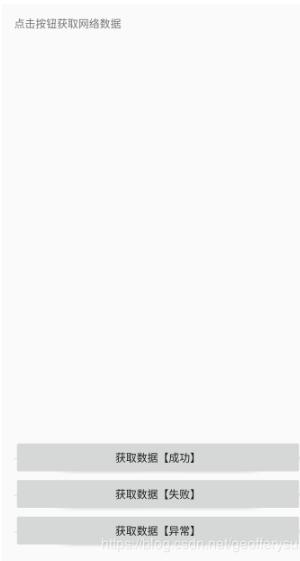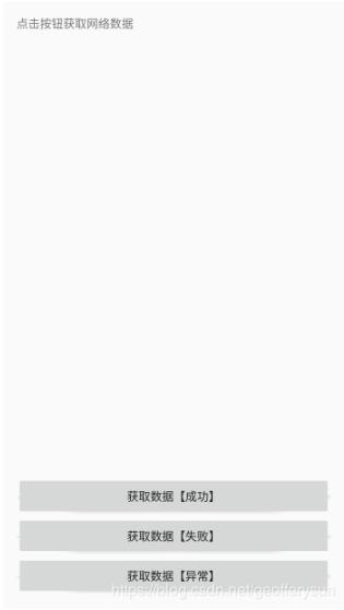 <?xml version="1.0" encoding="utf-8"?> <LinearLayout xmlns:android="http://schemas.android.com/apk/res/android" xmlns:tools="http://schemas.android.com/tools" android:layout_width="match_parent" android:layout_height="match_parent" android:orientation="vertical" android:padding="16dp" tools:context="sun.geoffery.mvpdemo.MainActivity"> <TextView android:id="@+id/text" android:layout_width="match_parent" android:layout_height="0dp" android:layout_weight="1" android:text="点击按钮获取网络数据" /> <Button android:id="@+id/getData" android:layout_width="match_parent" android:layout_height="wrap_content" android:text="获取数据【成功】" /> <Button android:id="@+id/getDataForFailure" android:layout_width="match_parent" android:layout_height="wrap_content" android:text="获取数据【失败】" /> <Button android:id="@+id/getDataForError" android:layout_width="match_parent" android:layout_height="wrap_content" android:text="获取数据【异常】" /> </LinearLayout>