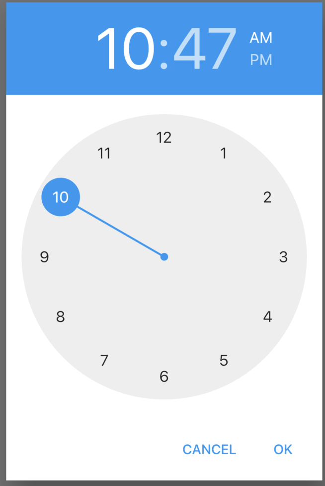 TimePicker和DatePicker一样,需要使用showTimePicker方法,用法如下: