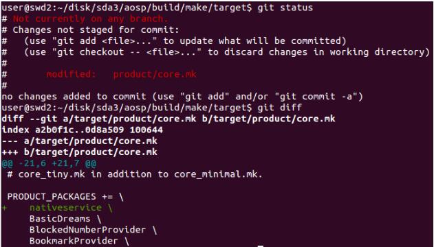 编写好 Android.mk 和 native_main.cpp 后,可以通过单边命令 “mmm system/core/nativeservice” 编译我们的守护进程了。但是此时用 make 编译整个 AOSP 时,却不会编译我们的 nativeservice。因此,需要告诉编译系统,编译工程时,同时编译 nativeservice。修改如下