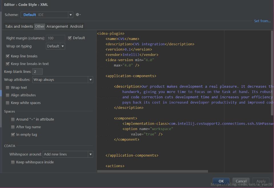 以上这篇AndroidStudio修改Code Style来格式化自定义标签的xml文件方式就是小编分享给大家的全部内容了,希望能给大家一个参考,也希望大家多多支持靠谱客。