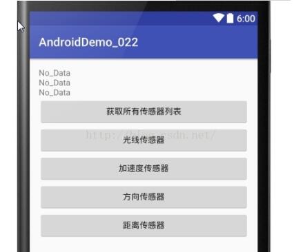 android传感器使用的demo,包括光线传感器,加速度传感器,距离传感器和方向传感器。