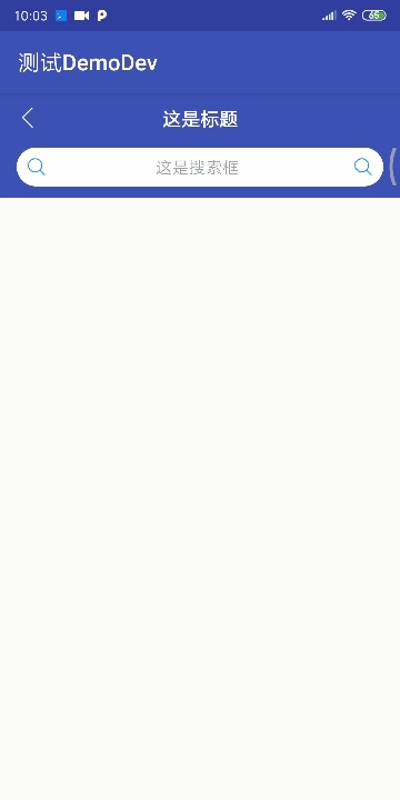 <?xml version="1.0" encoding="utf-8"?> <RelativeLayout xmlns:android="http://schemas.android.com/apk/res/android" xmlns:tools="http://schemas.android.com/tools" android:layout_width="match_parent" android:layout_height="match_parent" tools:context="com.cjxj.androiddemo.activity.SearchActivity"> <RelativeLayout android:id="@+id/search_rl_top" android:layout_width="match_parent" android:layout_height="wrap_content" android:background="#3F51B5"> <RelativeLayout android:id="@+id/search_layout" android:layout_width="match_parent" android:layout_height="44dp"> <ImageView android:id="@+id/search_iv_back" android:layout_width="10dp" android:layout_height="20dp" android:layout_alignParentLeft="true" android:layout_centerVertical="true" android:layout_marginLeft="20dp" android:src="@drawable/video_back" /> <TextView android:id="@+id/search_tv_title" android:layout_width="wrap_content" android:layout_height="wrap_content" android:layout_centerHorizontal="true" android:layout_marginTop="11.5dp" android:gravity="center" android:text="这是标题" android:textColor="#fff" android:textSize="17dp" android:textStyle="bold" /> </RelativeLayout> <LinearLayout android:id="@+id/search_ll_search" android:layout_width="match_parent" android:layout_height="35dp" android:layout_centerHorizontal="true" android:layout_marginLeft="15dp" android:layout_marginTop="49dp" android:layout_marginRight="15dp" android:layout_marginBottom="10dp" android:background="@drawable/activity_search_tv_shape" android:gravity="center_vertical" android:orientation="horizontal" android:visibility="visible"> <ImageView android:layout_width="16dp" android:layout_height="16dp" android:layout_marginLeft="10dp" android:src="@drawable/ic_search" /> <TextView android:id="@+id/search_tv_search" android:layout_width="0dp" android:layout_height="match_parent" android:layout_marginLeft="5dp" android:layout_marginRight="10dp" android:layout_weight="1" android:cursorVisible="false" android:gravity="center_vertical|center_horizontal" android:hint="这是搜索框" android:textSize="15dp" /> <ImageView android:layout_width="16dp" android:layout_height="16dp" android:layout_marginRight="10dp" android:src="@drawable/ic_search" /> </LinearLayout> </RelativeLayout> <com.cjxj.androiddemo.view.AnimationNestedScrollView android:id="@+id/search_sv_view" android:layout_width="match_parent" android:layout_height="match_parent" android:layout_below="@id/search_rl_top"> <LinearLayout android:layout_width="match_parent" android:layout_height="match_parent" android:descendantFocusability="blocksDescendants" android:orientation="vertical"> <TextView android:layout_width="match_parent" android:layout_height="900dp" /> </LinearLayout> </com.cjxj.androiddemo.view.AnimationNestedScrollView> </RelativeLayout>