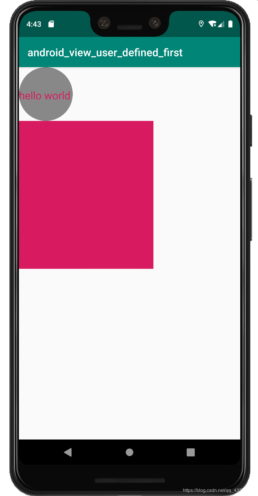 整完上面这些东西,我们的布局大小七十九已经出来了,然我们在活动的布局文件里面加上它,并添加上几个子 View 然后运行一下,先看看效果: