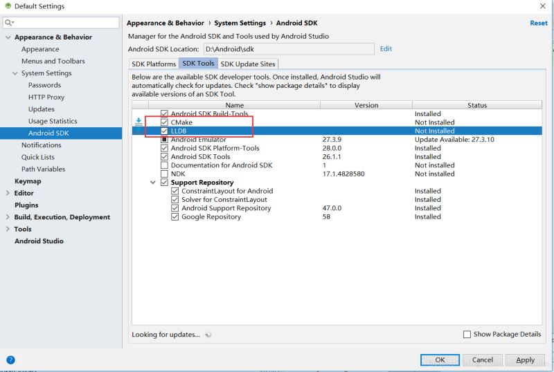1.打开sdkManager下载CMake和LLDB