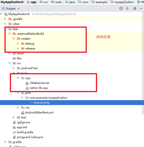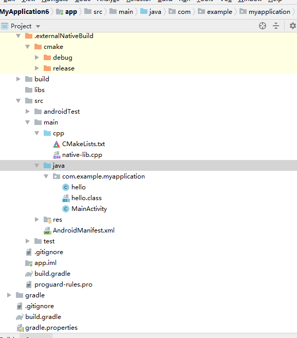 接下来是关键,在android studio3.0以前是没有此步骤的,大家看工程目录里面有一个CMakeLists.txt文件,这个文件是新建项目是自动生成的,里面已经写好了系统自动生成的