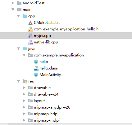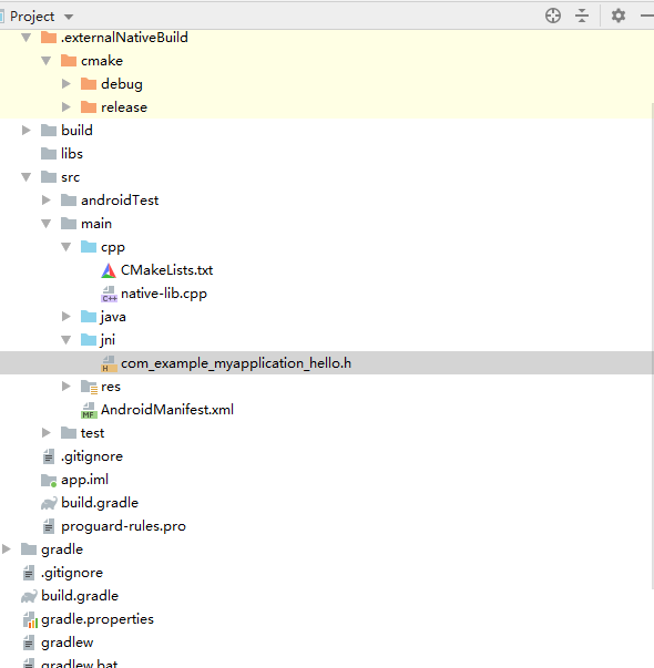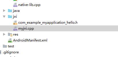 命令执行完毕后会在app/src/main目录下面生成一个jni文件夹,文件夹下面有一个.h后缀文件,如图:
