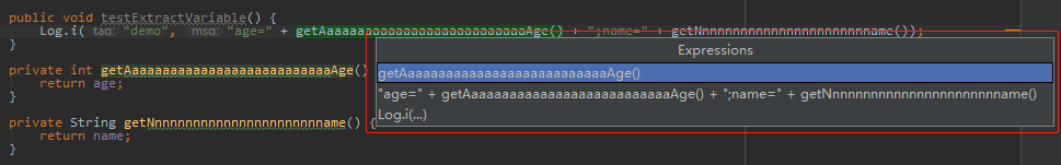 Log.i("demo", "age=" + getAaaaaaaaaaaaaaaaaaaaaaaaaaaAge() + ";name=" + getNnnnnnnnnnnnnnnnnnnnnnname());