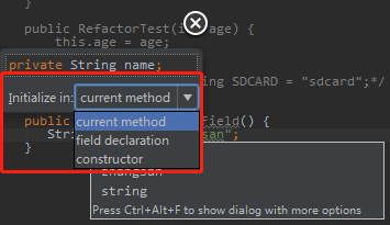 作用:重构当前。操作此项,会显示对当前光标选中处可行的重构方法。
