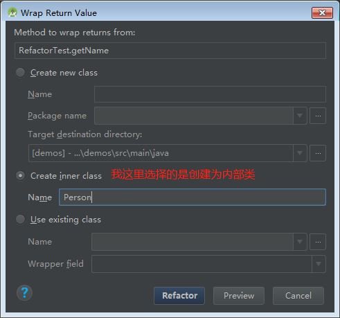 选中要修改的类型,执行该重构方法,会弹出对话框,根据需要编辑类型,选中作用范围即可。指定范围内,与该变量相关联处都会被修改。
