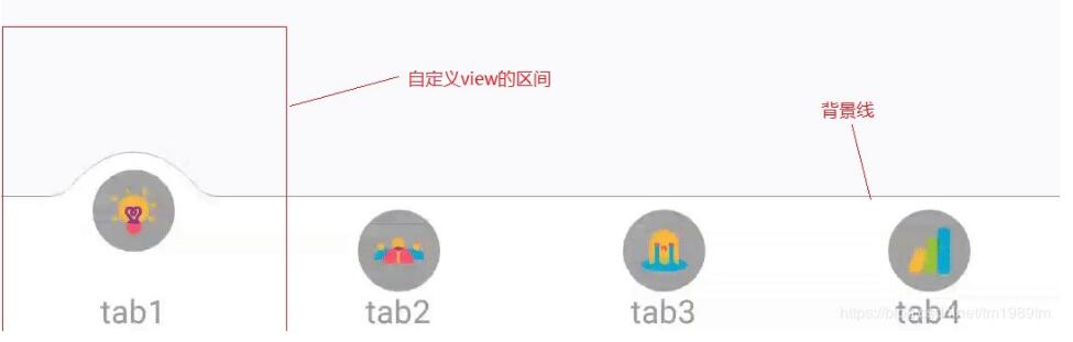 想自定义view点击实现动画效果,自定义view的区域一定比背景需要被顶起的线要高,所以布局如下: