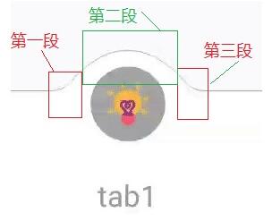 开始绘制view,被顶起的曲线分三段,前后两端曲线对称的,用path绘制曲线,中间段绘制贝塞尔曲线。