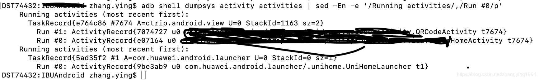 2.通过adb查看任务栈信息,发现任务栈信息是正常的,银联二维码界面确实是在HomeActivity上面的,只是被应用快照遮住了。