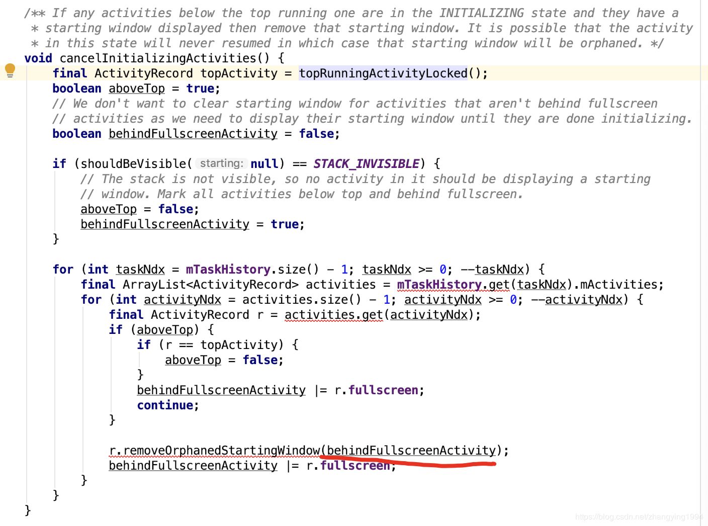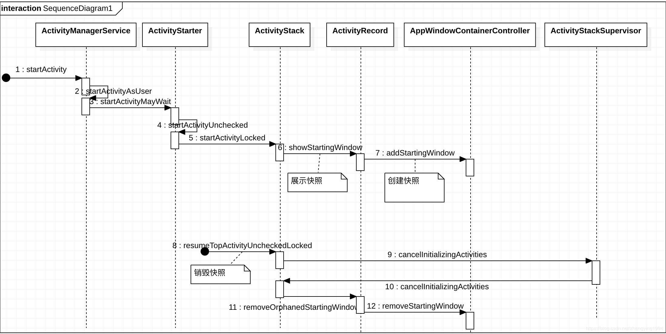 当按下home键, framework会存下一个应用的快照,快照可以通过taskId获取,当应用从后台进入前台时,会先显示快照,再开始执行当前Activity的生命周期方法。 在执行ActivityStack执行startActivityLocked的时候,通过ActivityRecord的showStartingWindow方法开始正式进入starting window的显示流程。