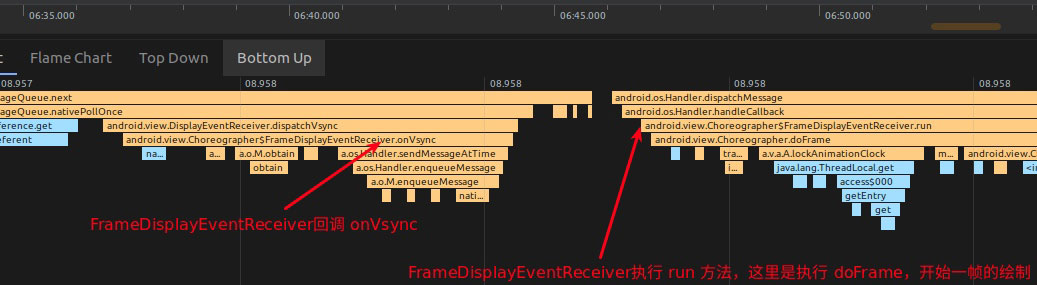 Choreographer 初始化SurfaceFlinger 的 appEventThread 唤醒发送 Vsync ,Choreographer 回调 FrameDisplayEventReceiver.onVsync , 进入 Choreographer 的主处理函数 doFrame