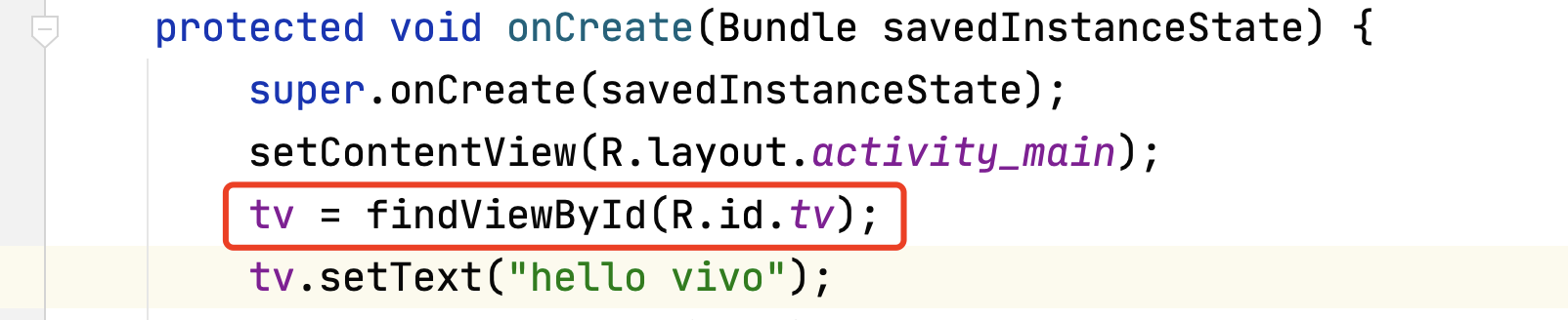 类似下面这种写法,当View一多得不停的findViewById 写很多行,手写起来很麻烦,我们首先尝试用运行期注解来解决这个问题,看看能不能自动处理这些findViewById的操作。