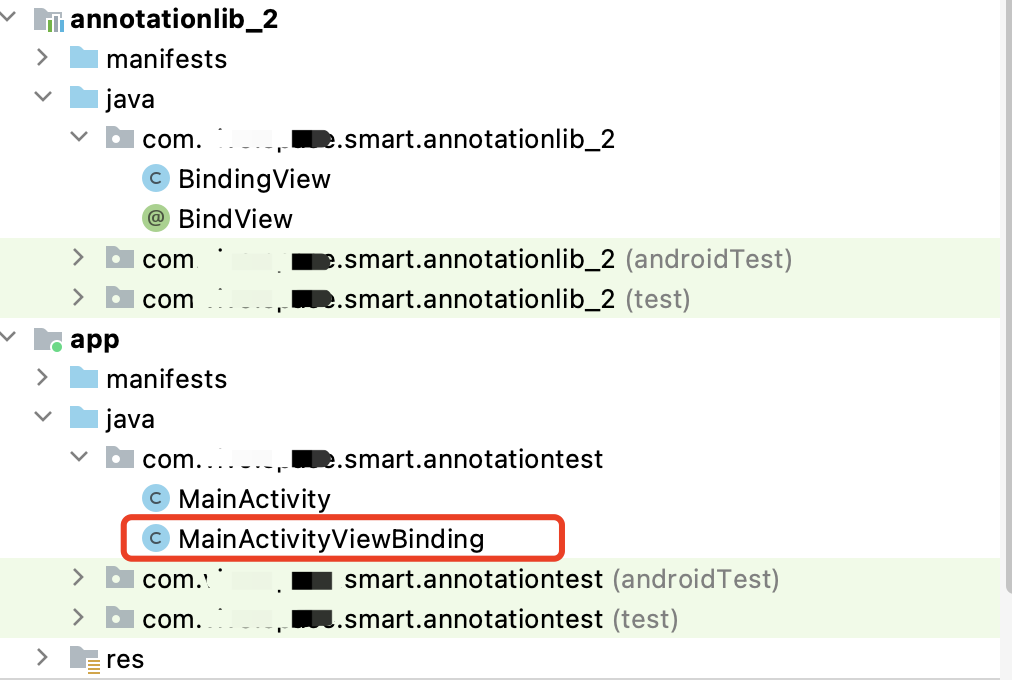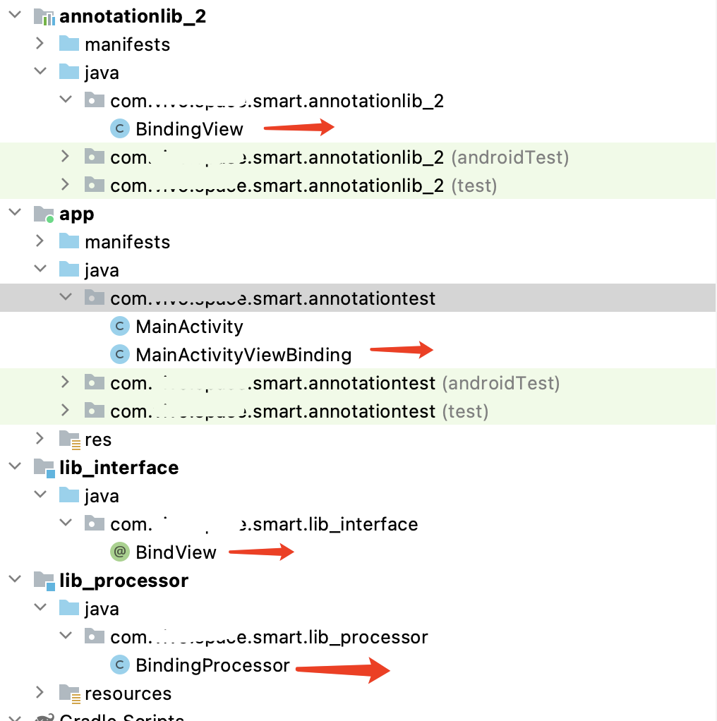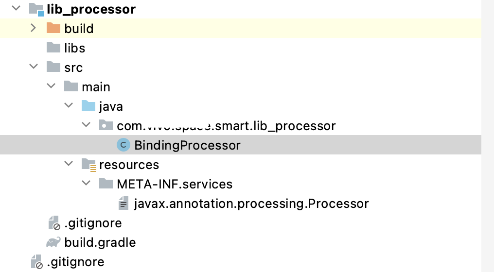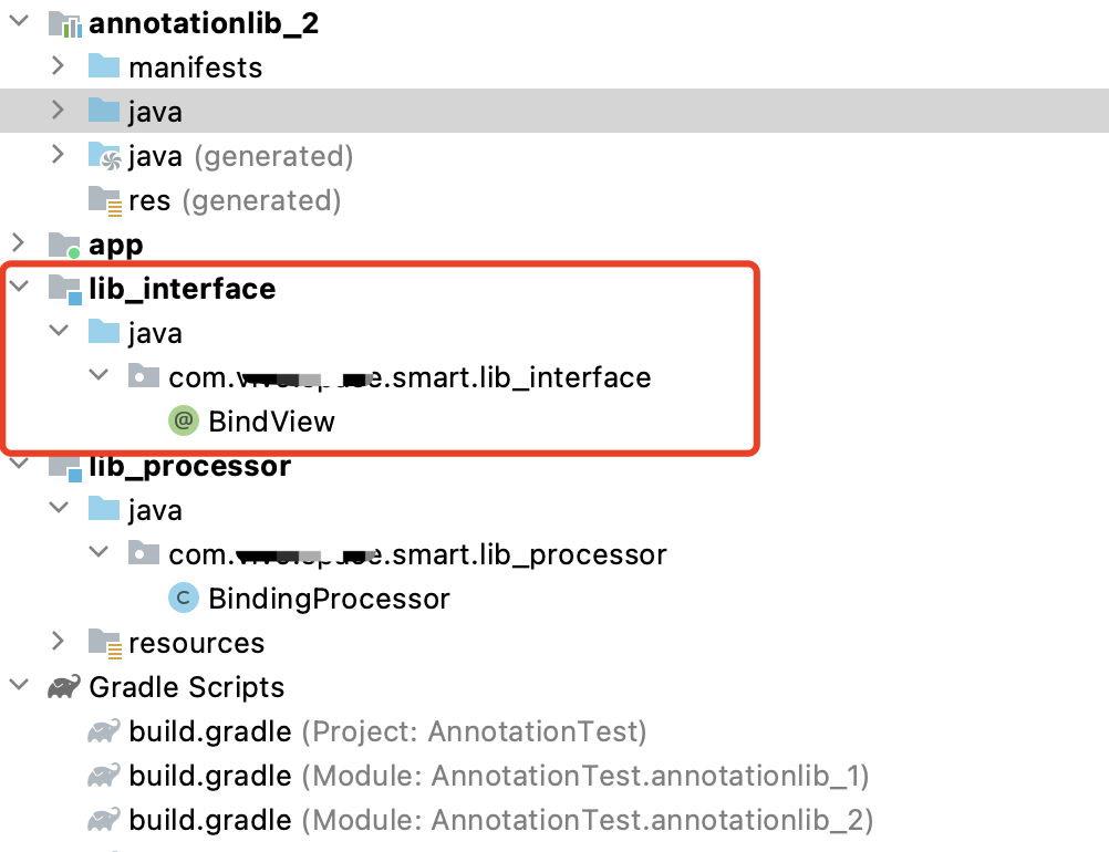 到这里还没完,我们得告诉这个注解处理器 只处理我们的BindView注解即可,否则这个注解处理器默认处理全部注解 速度就太慢了,但是此时 我们的BindView这个注解类还在lib仓里面,显然我们要调整一下我们的工程结构: