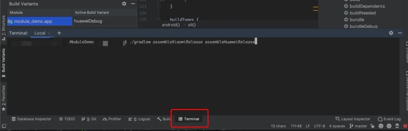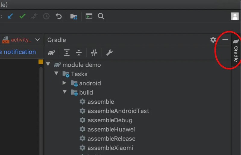 (空格隔开要打的渠道包的任务名称即可,任务名称可以通过点击 android studio 右边的 Gradle 根据图中目录查看)