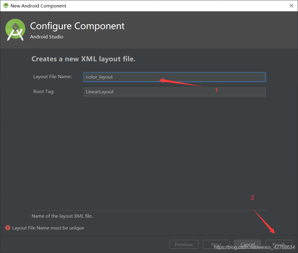 2. 在res目录下的layout文件夹创建color_layout.xml文件