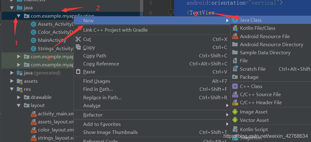 3. 在java目录下的com.example.myapplication包中创建Color_ActivityDemo类