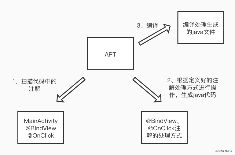 APT(Annotation Processing Tool)即注解处理器,是一种处理注解的工具,确切的说它是javac的一个工具,它用来在编译时扫描和处理注解。注解处理器以Java代码作为输入,生成.java文件作为输出
