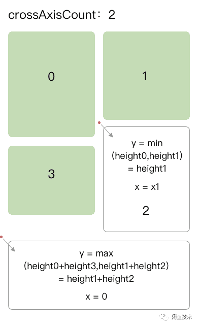 我们先来计算一下纵坐标,我们用卡片的index对crossAxisCount进行整除,然后再用结果乘上卡片的高度,就可以得到卡片的纵坐标了。