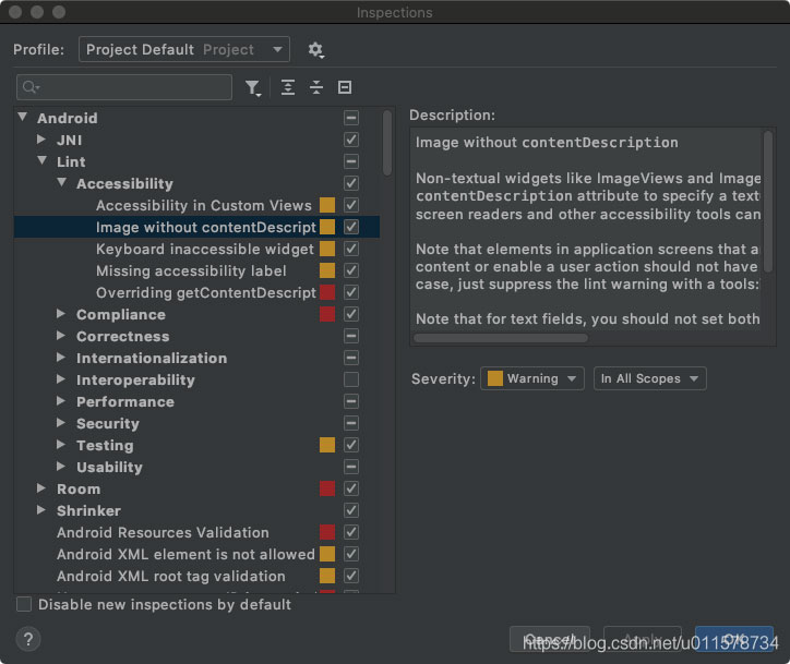 我们可以很方便的在 Android Studio 中修改 lint 检查时的配置。