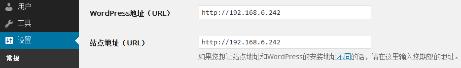 3、修改wordpress中的设置,必须将这个了的站点地址改为前端nginx的ip地址或者域名