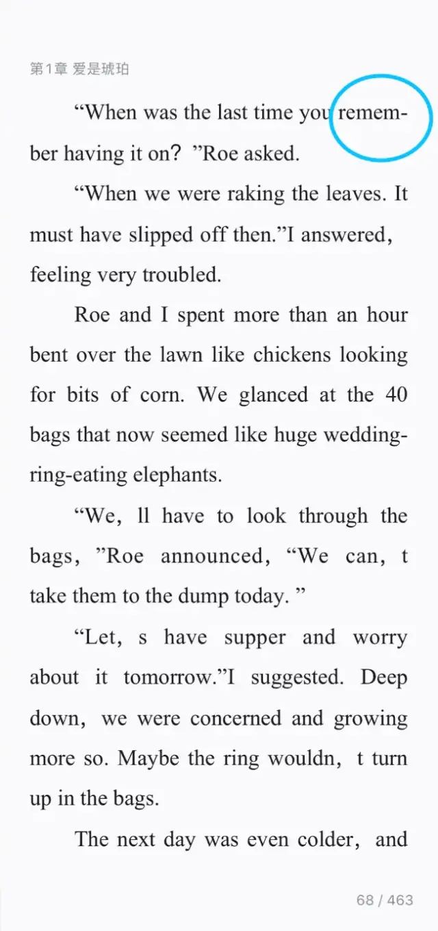 (2)对于实现的英文单词截断的效果,还有优化的地方,经过一些小伙伴的提醒,发现还可以通过音节的进行拆分,再去研究了一波微信读书和掌阅的截断效果,发现确实是使用了音节来进行截断,这样展示效果就更加完美了;