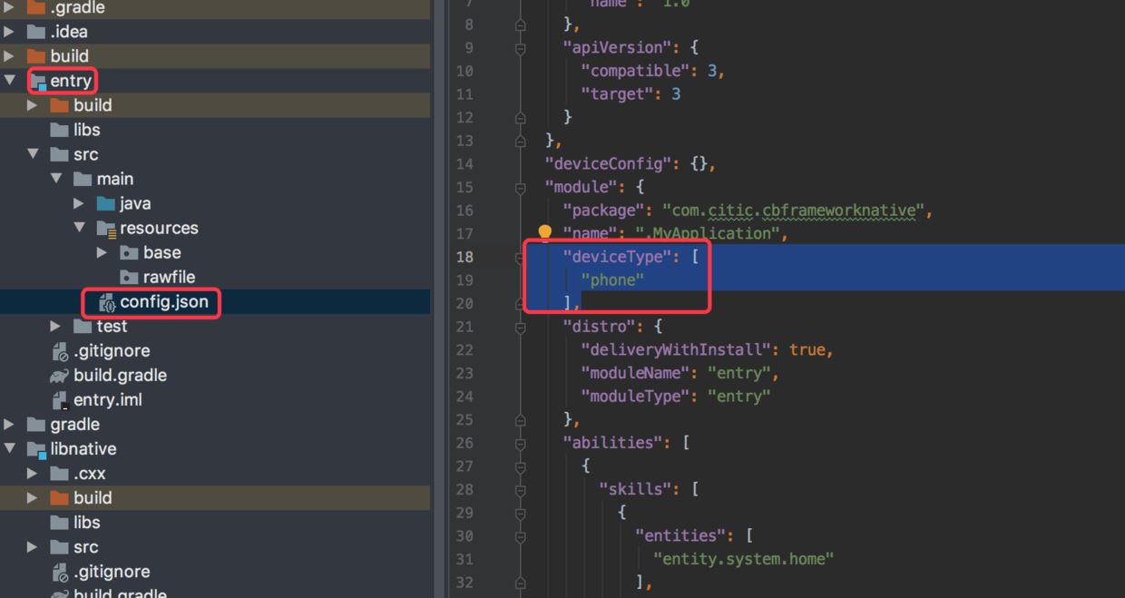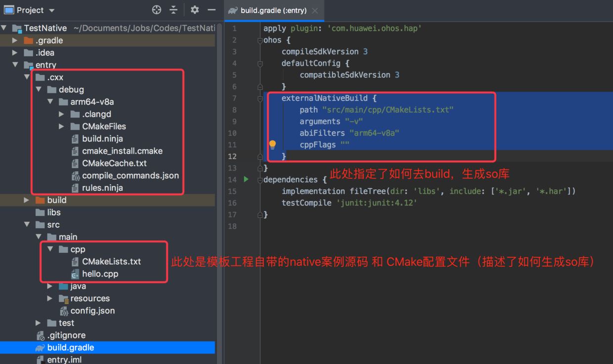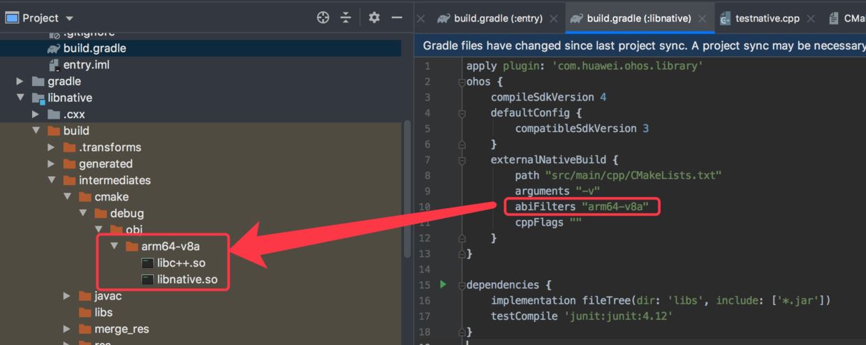 entry依赖libnative,我们可以在entry的build.gradle中进行配置: