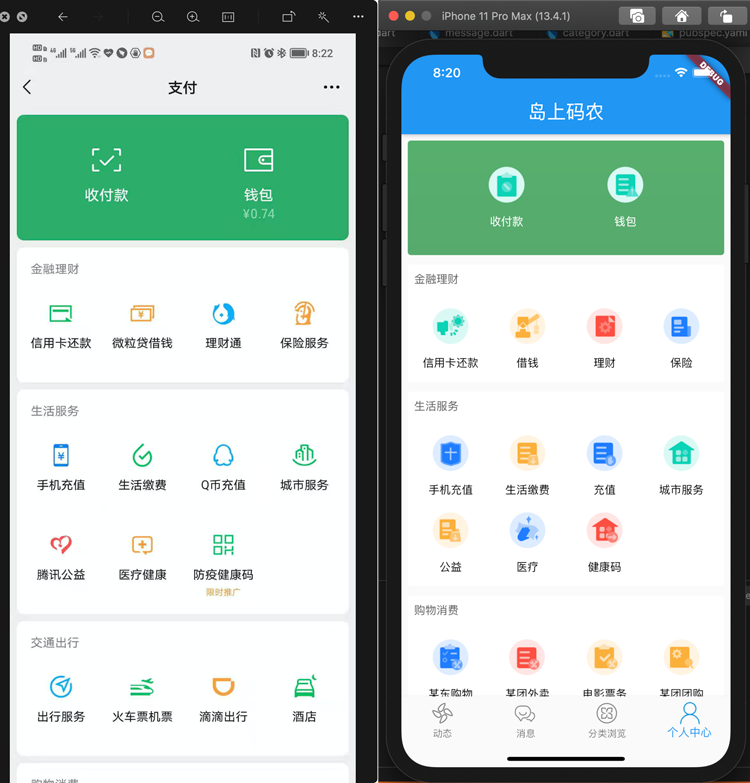 左侧是微信支付的界面,右侧是开发完成后的效果,图标是从 iconfont 上下载的。首先介绍一下本篇涉及到的组件。