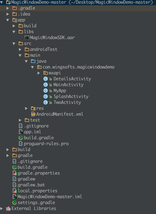先把魔窗这个包倒进来,然后在gradle上进行配置,我的是这样配置的:
