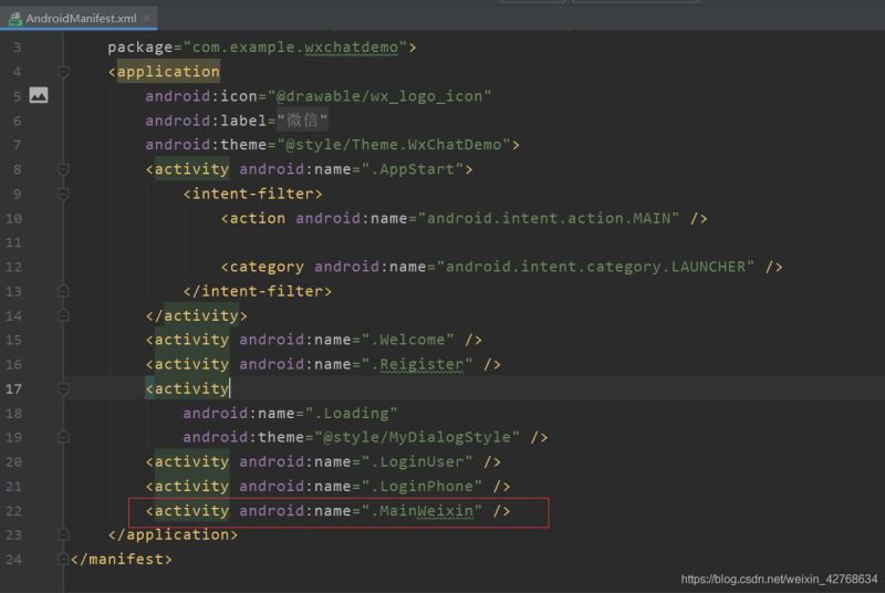 在AndroidMainfest.xml中声明创建的activity,由于创建fragment不是activity,所有不用声明,声明主界面的activity即可(fragment是内嵌在activity中的)