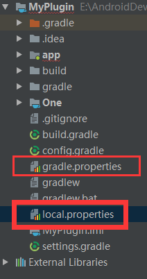 在Android Studio 创建一个项目的时候,rootProject下面会生成gradle.properties和local.properties文件,如下图: