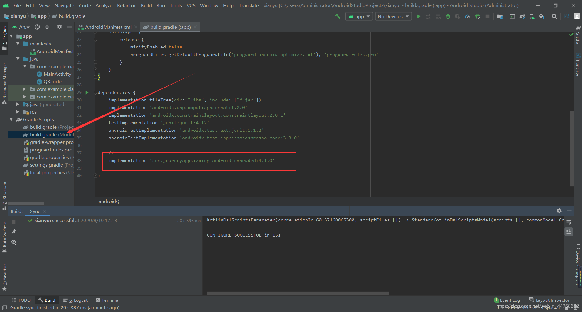 implementation 'com.journeyapps:zxing-android-embedded:4.1.0'