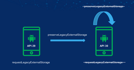 如果有数据需要迁移,可以在 AndroidManifest 中将 preserveLegacyExternalStorage 属性设为 true ,当用户升级到以 Android 11 为目标平台时,这个配置就会生效。具体而言,这个配置在用户重新安装该应用前都是有效的。