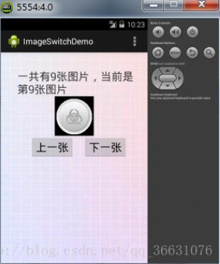 在该实例中,提供一个图片切换器和两个点击按钮,用于切换图片,并用一个TextView显示图片信息。其中,当前图片若为最后一张,点击下一张,则跳转到第一张;同理,第一张图片点击上一张,则显示最后一张图片,循环查看当前图片。