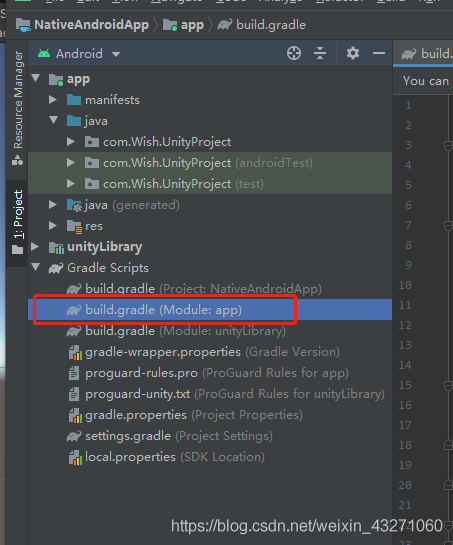 选择 build.gradle(Module:NativeAndroidApp)