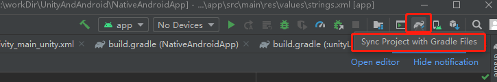 选择 NativeAndroidApp 的 strings.xml 添加