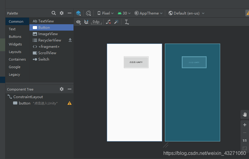 将下图中的Button拖拽到白框内