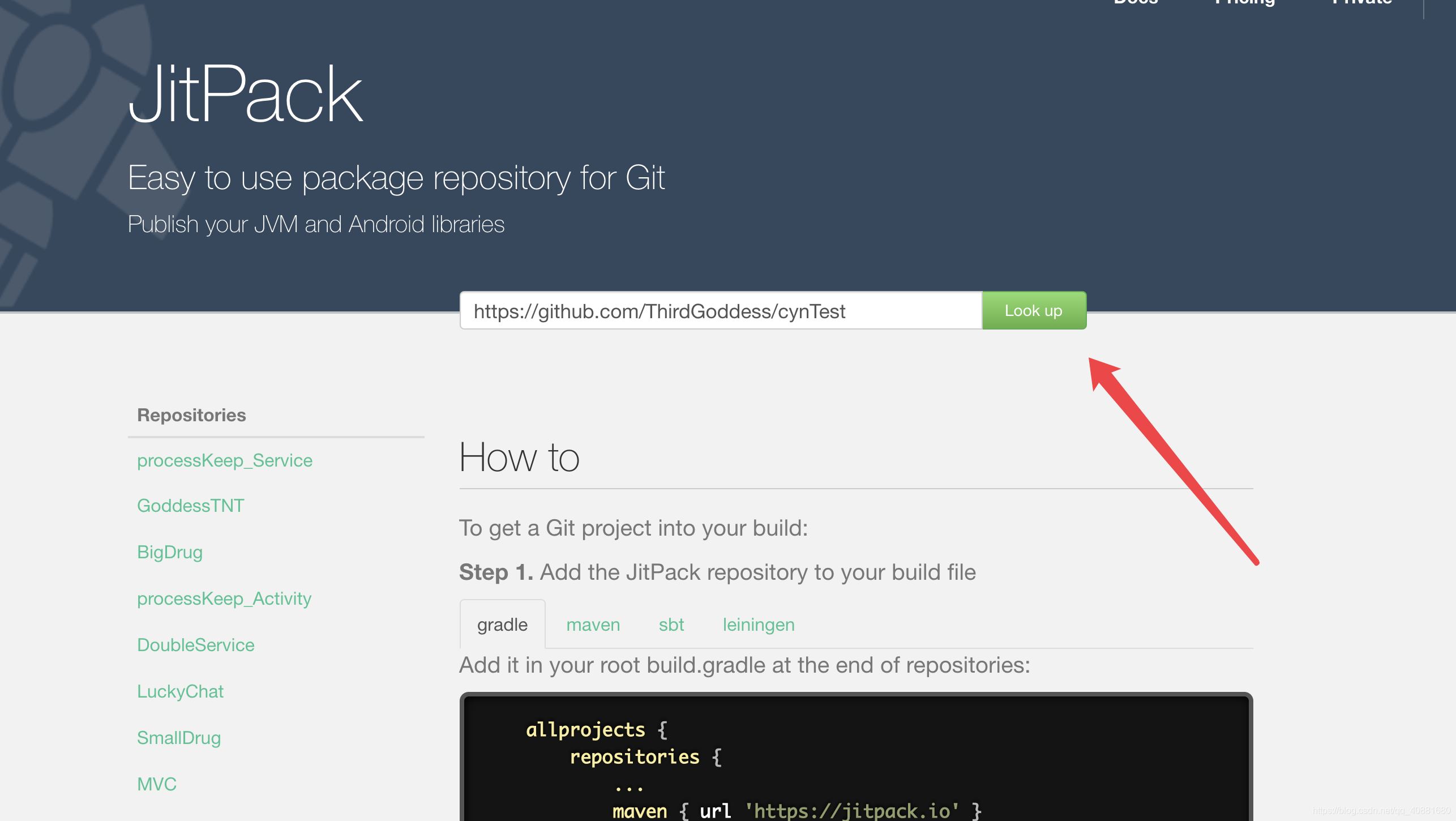 追后将库的地址复制到如图中的输入框,最后点击Look up。