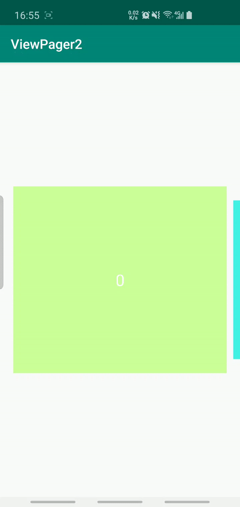同时ViewPager2新增了一个fakeDragBy的方法。通过这个方法可以来模拟拖拽。在使用fakeDragBy前需要先beginFakeDrag方法来开启模拟拖拽。fakeDragBy会返回一个boolean值,true表示有fake drag正在执行,而返回false表示当前没有fake drag在执行。我们通过代码来尝试下: